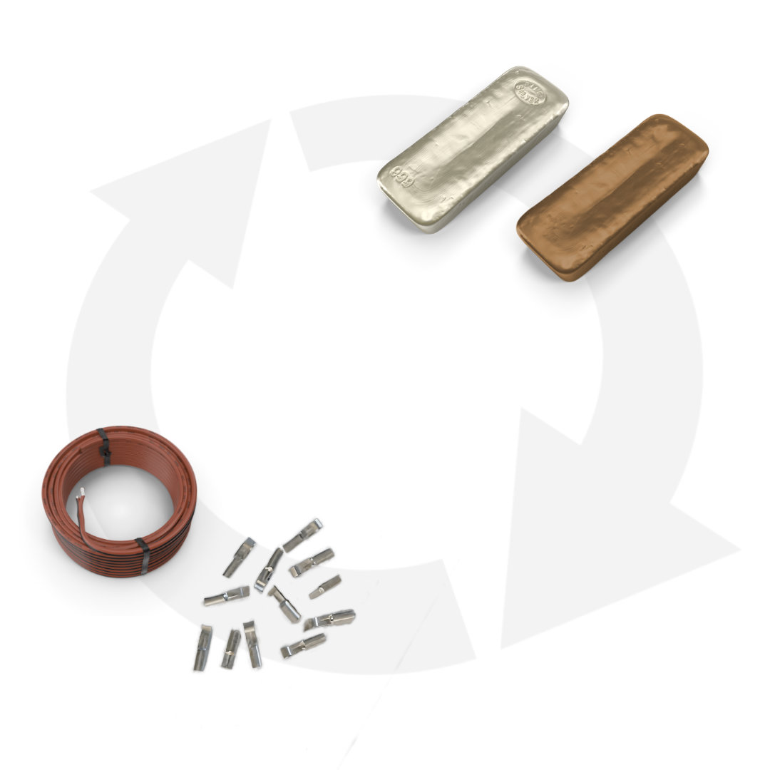 Recycling copper saves up to 85% of the energy used in primary copper production and reduces CO2 emissions by 65%. (Bureau of International Recycling) And the carbon emissions from recycling silver are one-third those from silver mining. (Recycling Today)